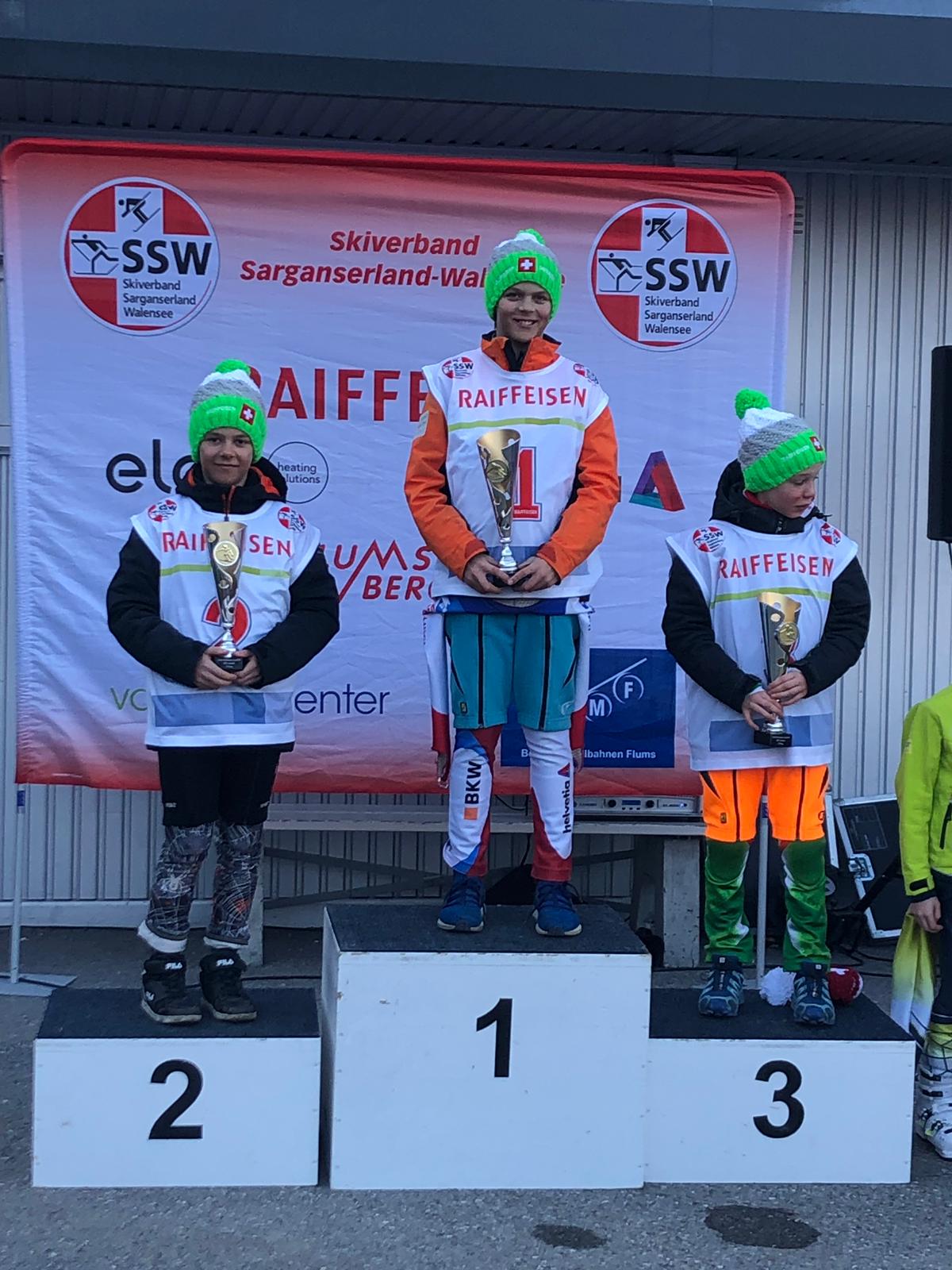 Nur gerade zwei Tage nach seinem 11. Geburtstag kehrte Valerio auf das oberste Treppchen zurück. Der Raiffeisen Cup auf dem Pizol wurde für die Jahrgänge 2008 + 2009 in zwei einzeln gewerteten Riesenslalomläufen ausgetragen. Valerio erzielte in beiden Rennen eine überlegene Bestzeit. Matti Wilhelm startete ebenfalls in dieser Kategorie und erreichte die Ränge 16. und 7.