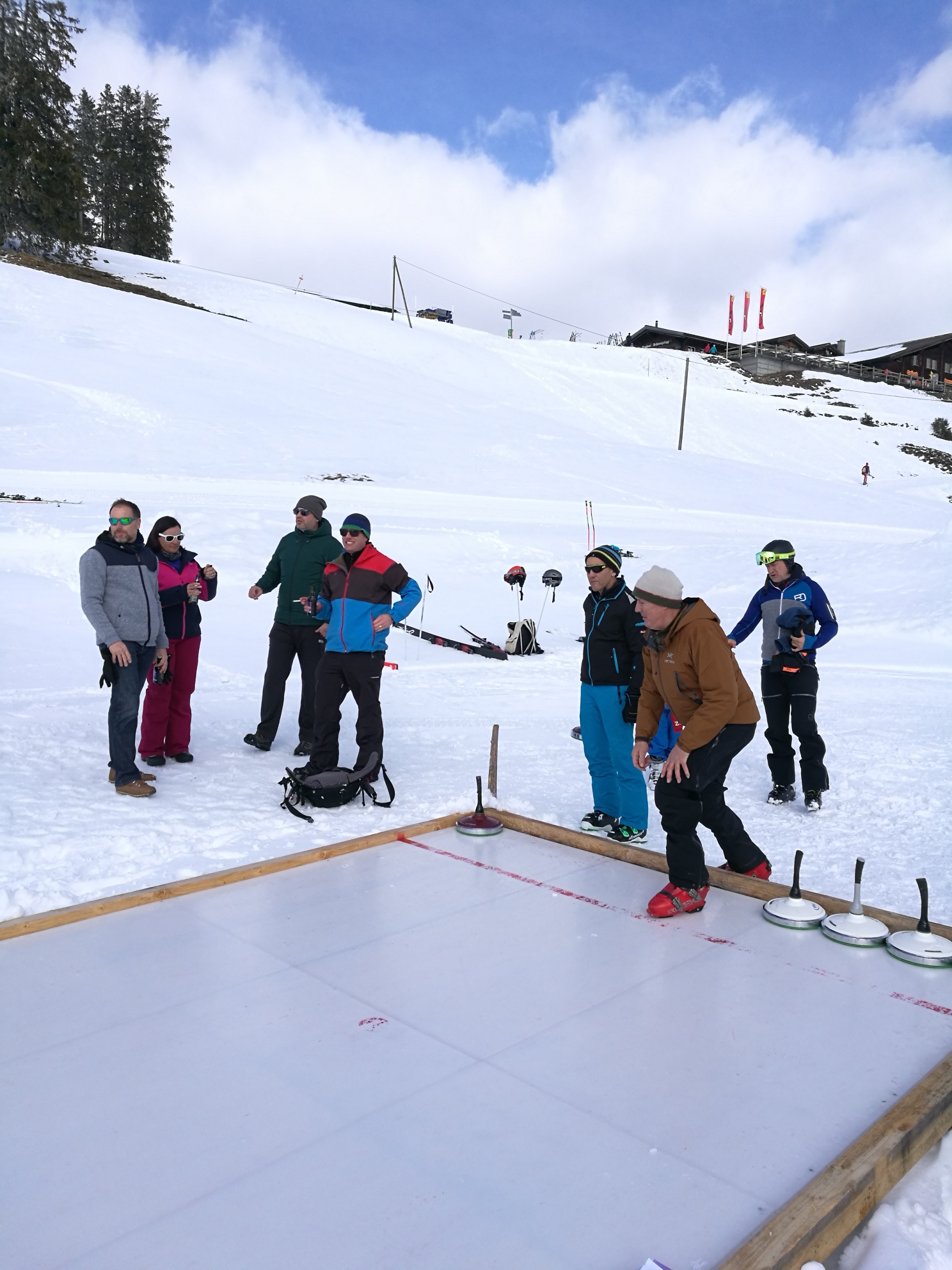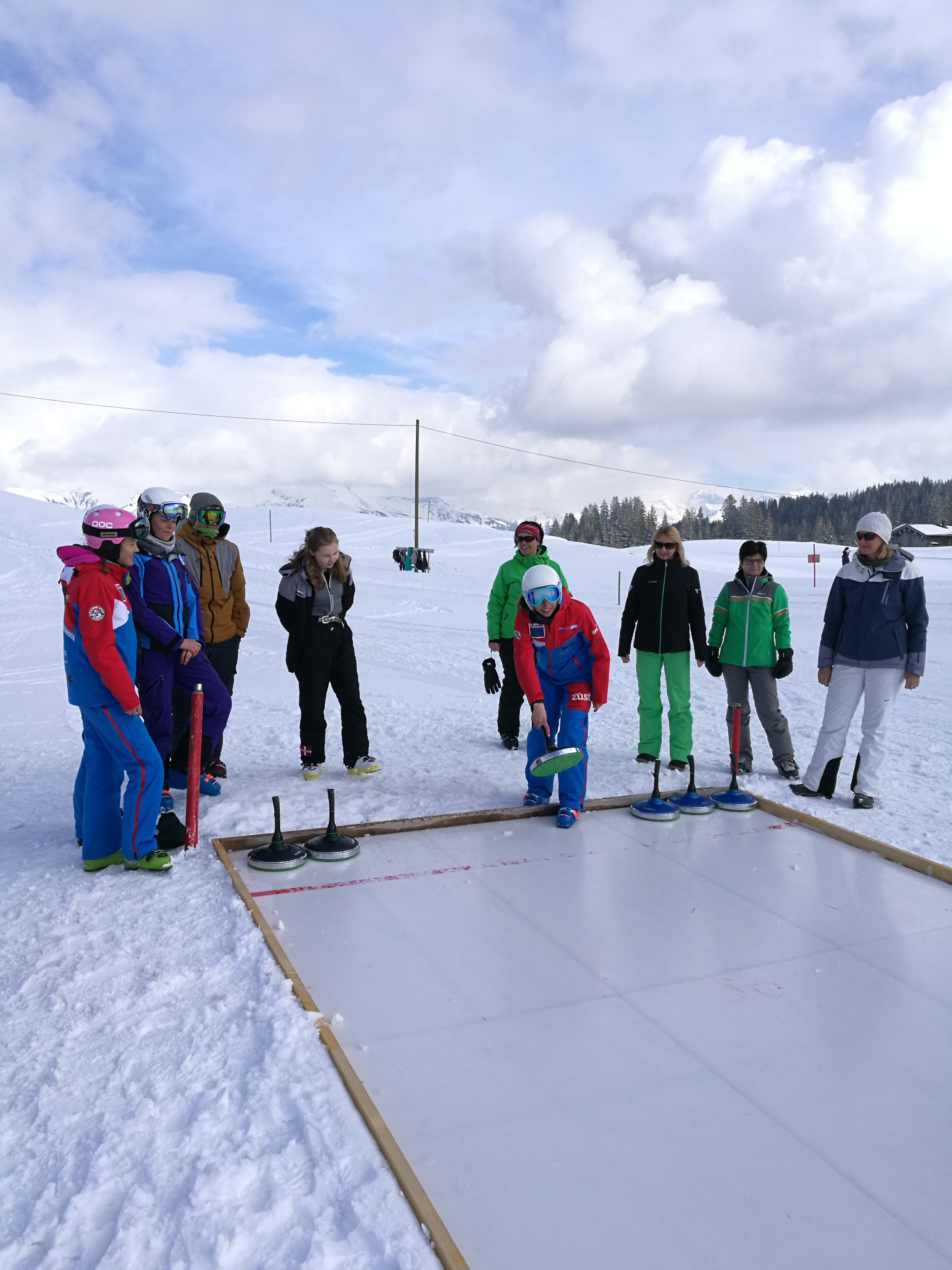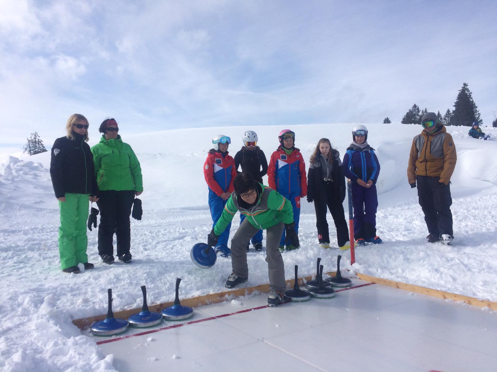 Zusammen mit den Bergbahnen Grüsch-Danusa führten wir am Nachmittag den Schneesporttag durch. Für die Kleinen standen die Schneetöffs bereit. Die Teenager zeigten coole Tricks im Funpark. Etwas gemütlicher nahmen es die Erwachsenen. Beim Eisstockschiessen versuchten sie, mit der richtigen Strategie den Gegner in die Knie zu zwingen.